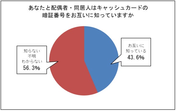 しかし、今回のアンケートによると、56.3%が家族のキャッシュカードの暗証番号を「お互い知らない、不明・わからない」と回答しています。