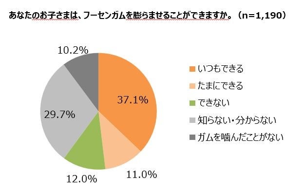 41.7%の親が自身の子どもが「フーセンガムを膨らませられない」「知らない・わからない」と回答